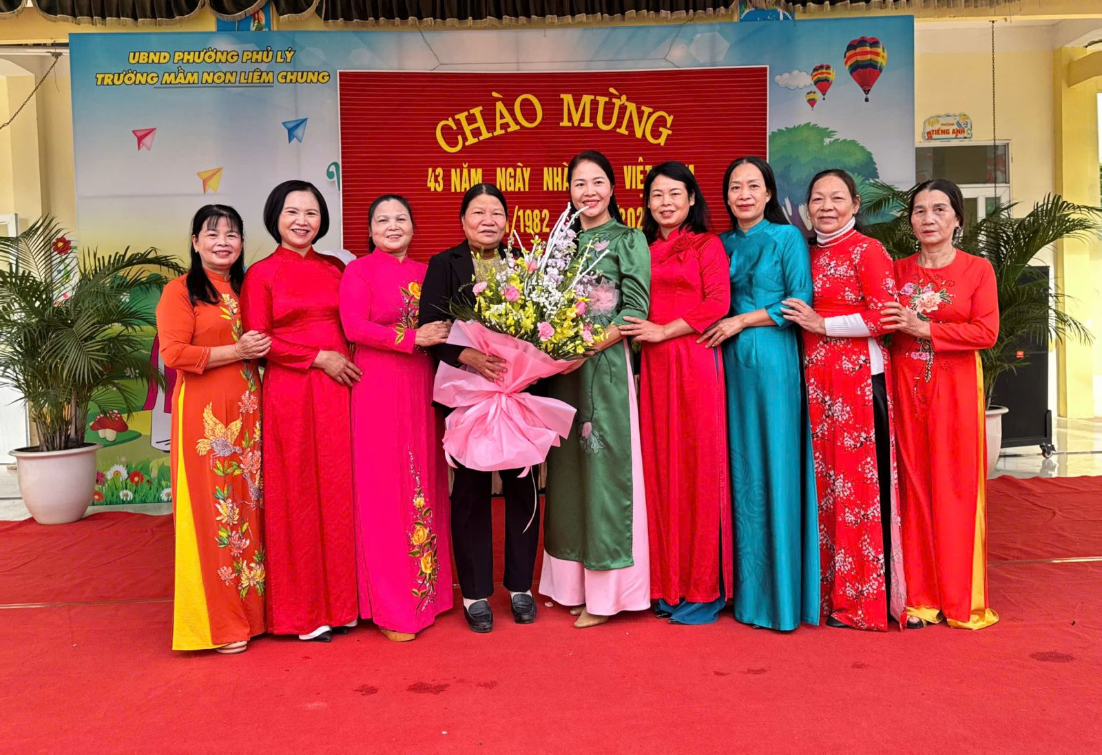 Đặc biệt, buổi lễ vinh dự được đón đại diện lãnh đạo Phường Phủ Lý về dự và chúc mừng. Sự hiện diện của lãnh đạo thể hiện sự quan tâm sâu sắc của chính quyền địa phương đối với sự nghiệp giáo dục mầm non, đồng thời là nguồn động viên lớn đối với tập thể cán bộ, giáo viên nhà trường. Trong không khí trang trọng, lãnh đạo thành phố đã có bó hoa tươi thắm chúc mừng các cô giáo nhân ngày lễ đặc biệt, ghi nhận những nỗ lực và thành tích mà trường Mầm non Liêm Chung đã đạt được trong thời gian qua.