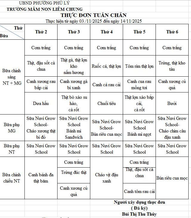 Thực đơn Tháng 11